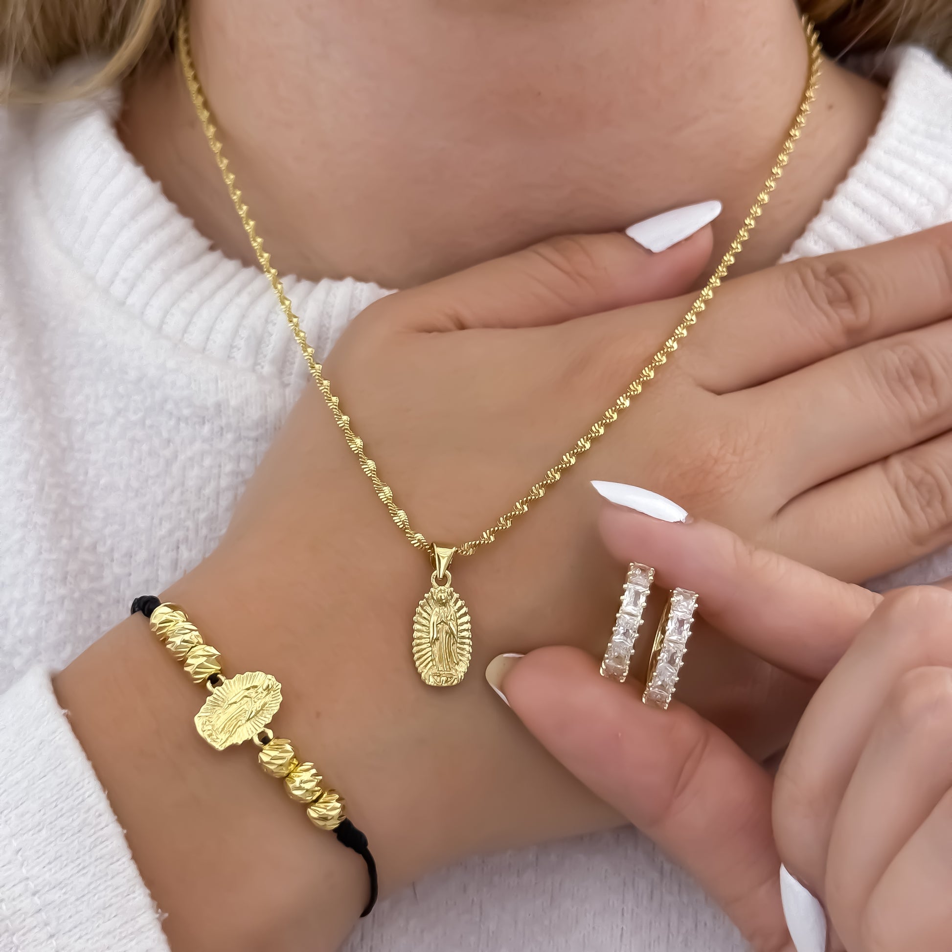 ✨ Conjunto Exclusivo Virgen de Guadalupe en Oro Laminado 18K ✨