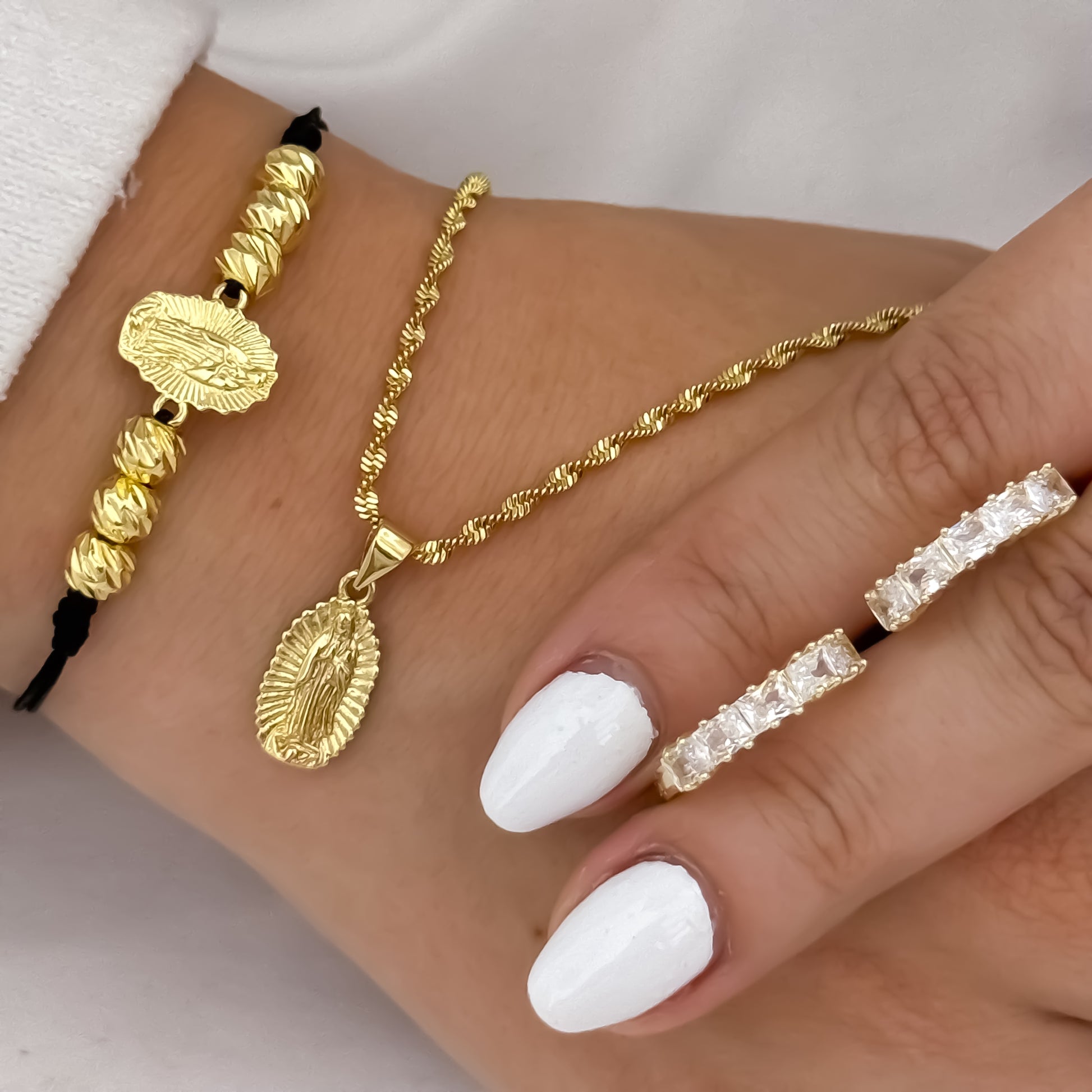 Protección espiritual: Llevar la Virgen de Guadalupe es símbolo de cuidado y compañía. Confianza total: No se despinta, no se oxida, no se pone negro. Resiste agua, sudor y perfumes. Look de lujo: El mismo brillo y elegancia del oro macizo, sin gastar millones. Autoestima y presencia: Te hará sentir más segura, elegante y con estilo propio. Regalo perfecto: Expresa amor, protección y distinción a esa persona especial.