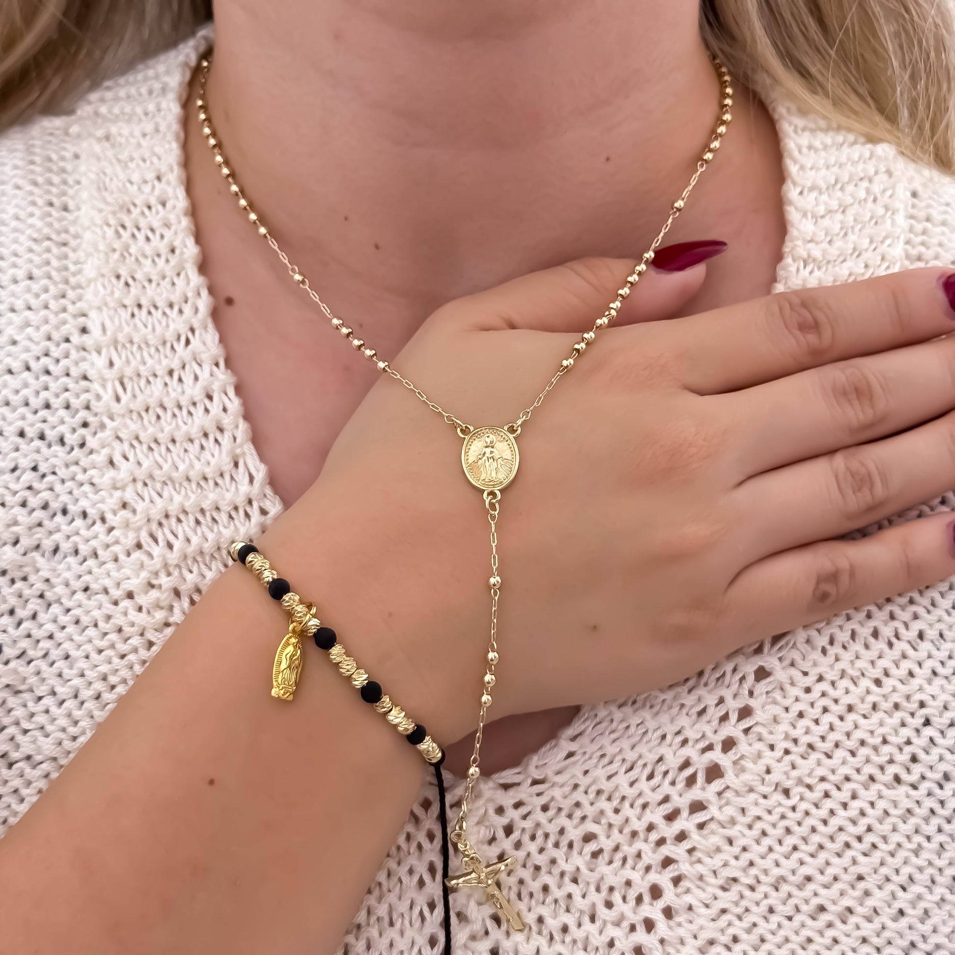 Camándula Virgen de Guadalupe de 50cm de 4mm + Pulseras Virgen de Guadalupe en Balin italiano de 4mm en Oro Laminado 18k con Garantia de por vida