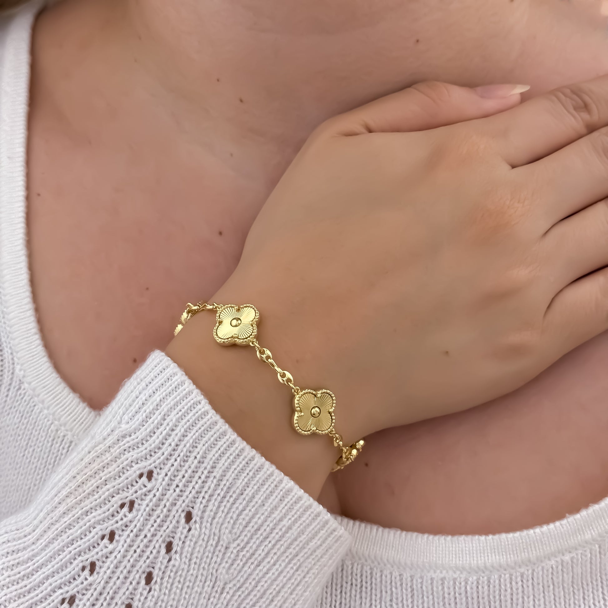 Pulsera Van Cleef en Tejido Gucci en Oro Amarillo de buena suerte en Oro Laminado 18k con Garantía de por vida