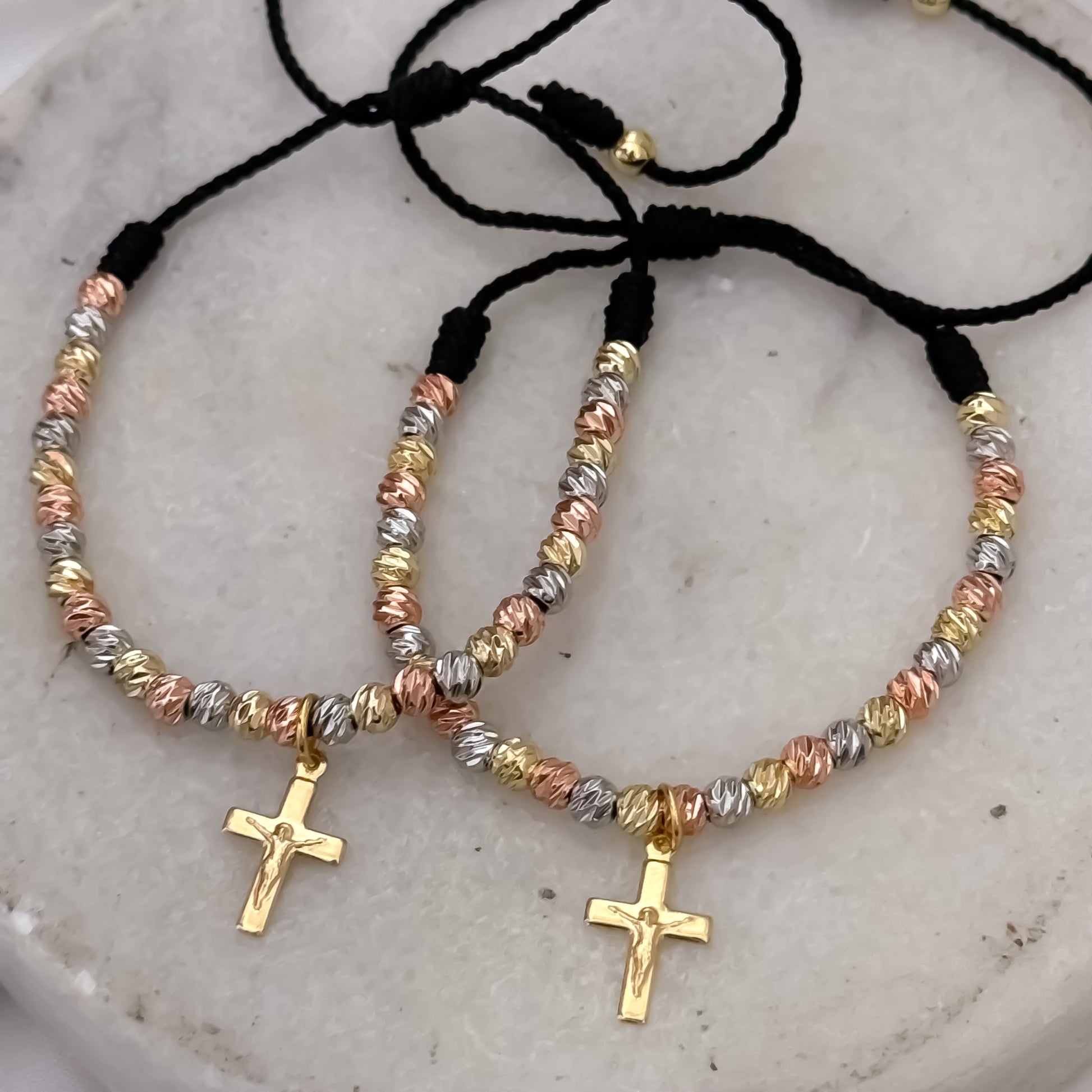 Pulseras para Parejas: Balín Italiano 3 Oros con Cruz en oro Laminado 18k